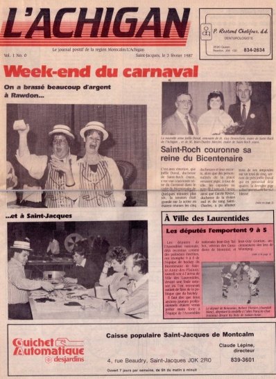 ÉDITEUR FONDATEUR DE L’HEBDOMADAIRE L’ACHIGAN (région de Joliette) – 1987