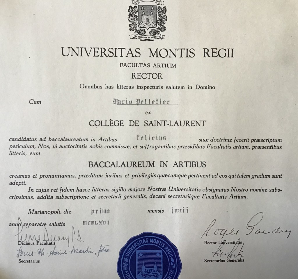 - Baccalauréat ès arts, Université de Montréal, 1966.