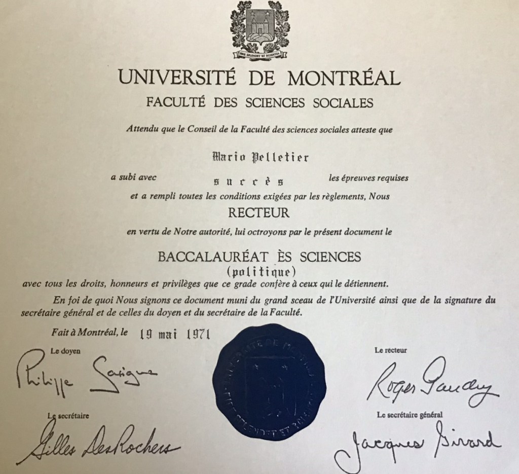 - Baccalauréat en science politique, Université de Montréal, 1971.
