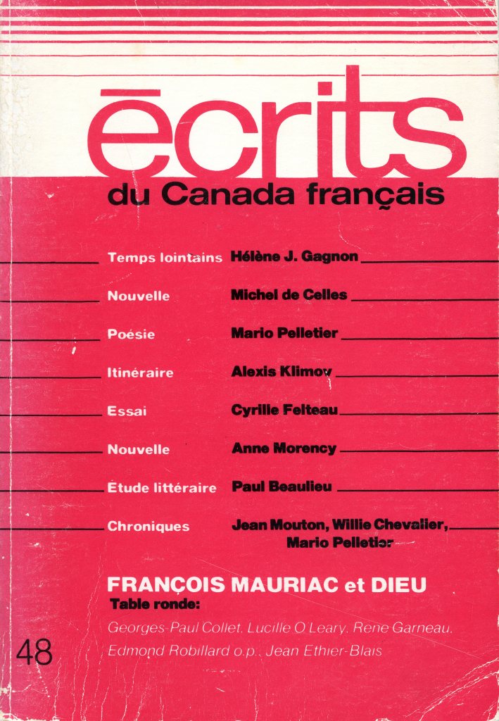 Plus d’une centaine de recensions, études et essais sur des écrivains d’ici et d’ailleurs dans Le Devoir, ainsi que dans les revues Liberté et Écrits du Canada français, entre autres.