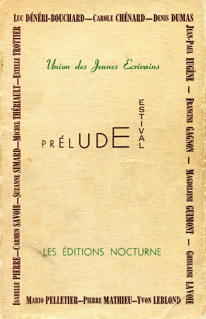 PRÉLUDE ESTIVAL – recueil collectif de poésie Éditions Nocturne, Montréal, 1962.
