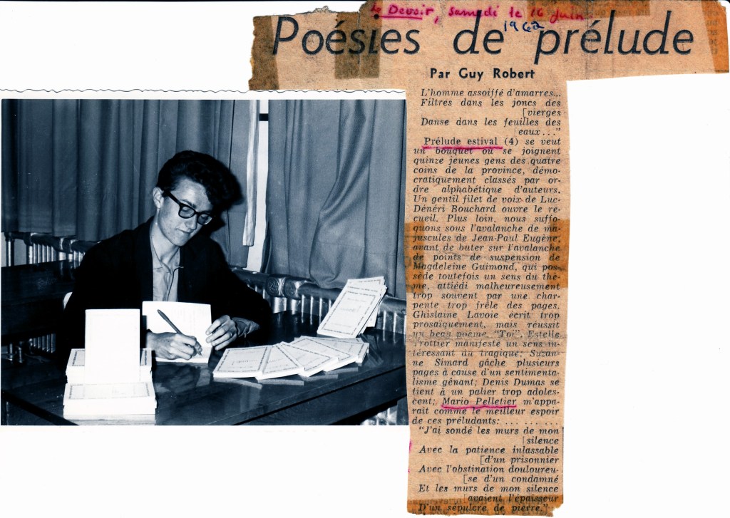 Prélude estival se veut un bouquet où se joignent quinze jeunes gens des quatre coins de la province, démocratiquement classés par ordre alphabétique d’auteurs. (…) Mario Pelletier m’apparaît comme le meilleur espoir de ces préludants : « J’ai sondé les murs de mon silence / Avec la patience inlassable d’un prisonnier / Avec l’obstination douloureuse d’un condamné / Et les murs de mon silence avaient l’épaisseur / D’un sépulcre de pierre. »
